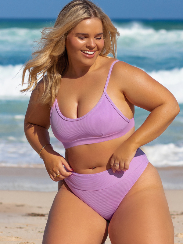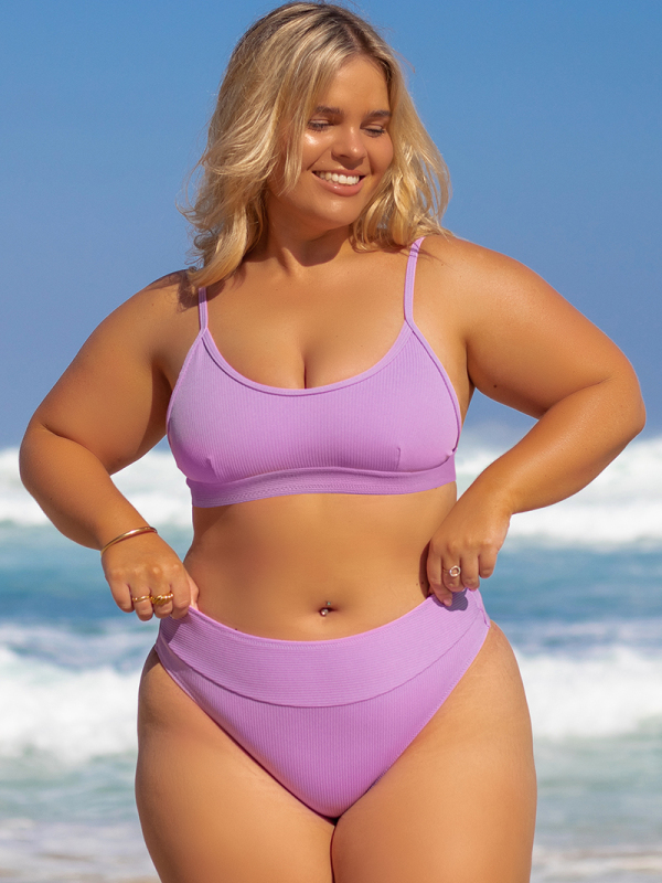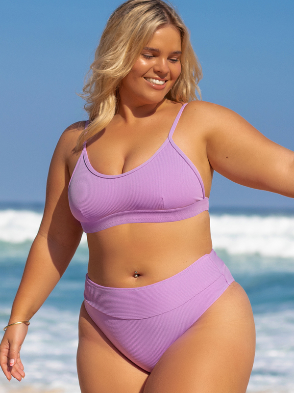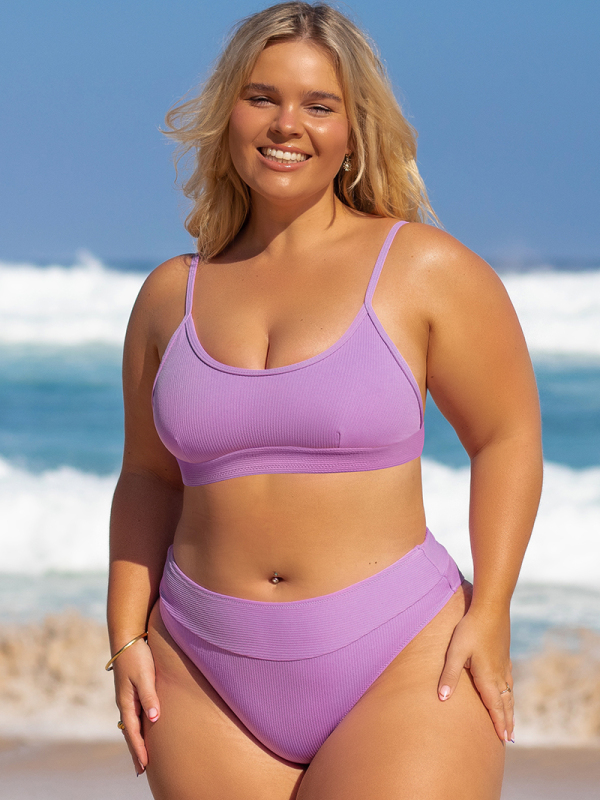 Looking for a suit that is both supportive and chic. Our U Neck Rib-Knit Purple Bikini Set is designed for your. Feel like a goddess in this cute purple bikini set.