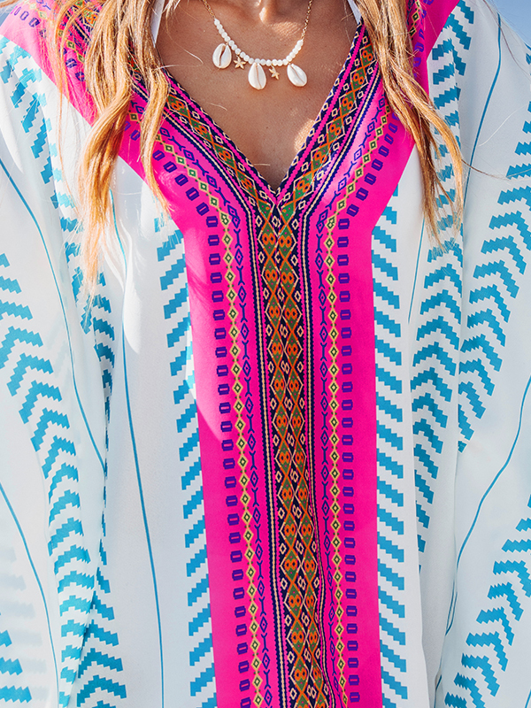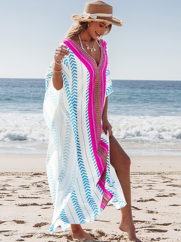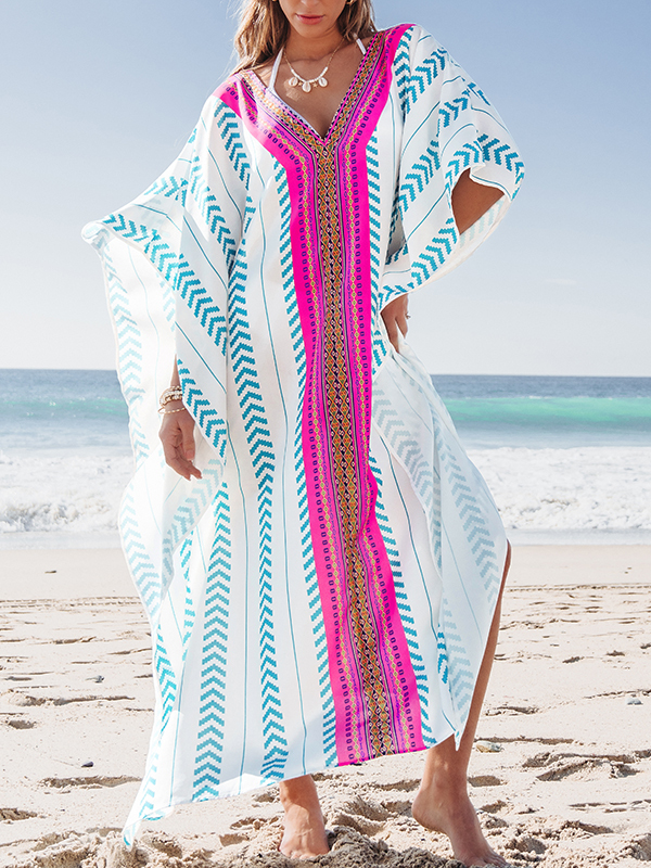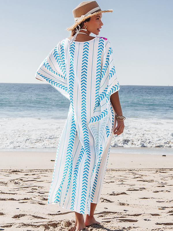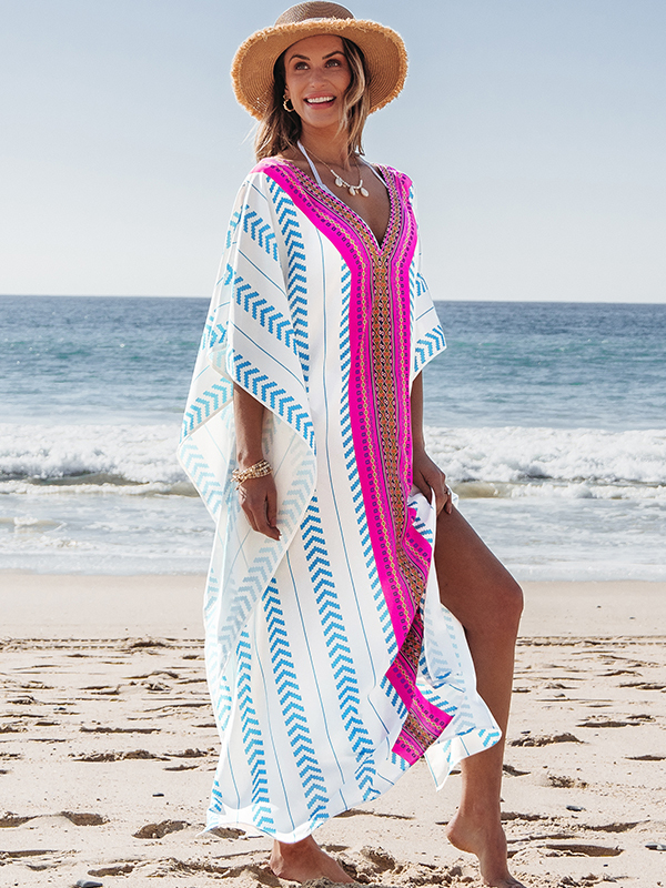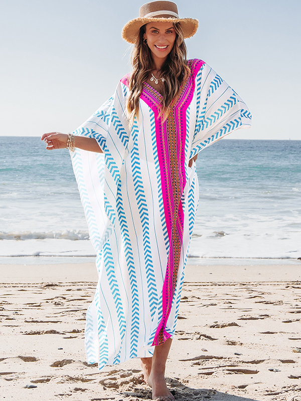 Folklore Asymmetry Stripes Basic Full Print Vacation Cover-Ups