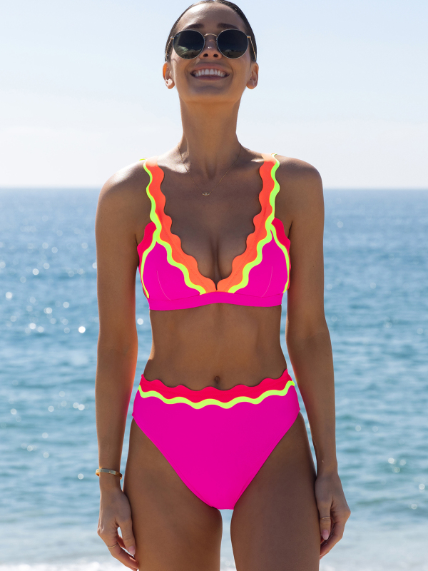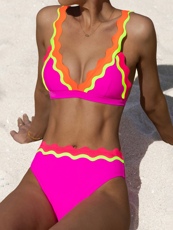 Color Block Patchwork Low Waist Bikini Set
