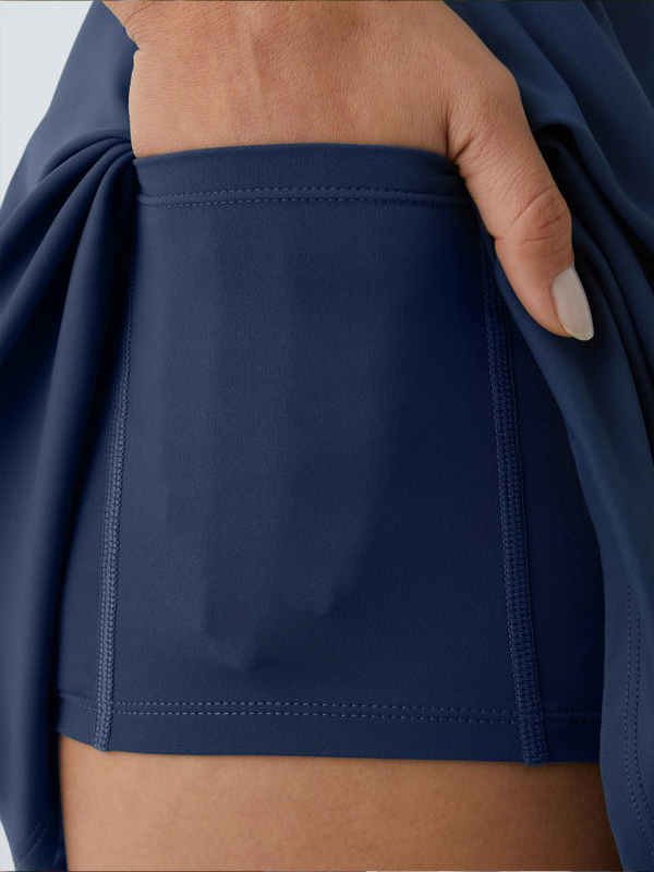 Designed to move with you, this tennis-inspired dress combines a flattering silhouette with everyday comfort. Featuring a built-in bra and secure inner shorts, it offers confident coverage for both active moments and casual wear. The V-shaped waistline and colorblock piping subtly define your shape, while the soft, stretchy fabric keeps you comfortable from the court to the street.