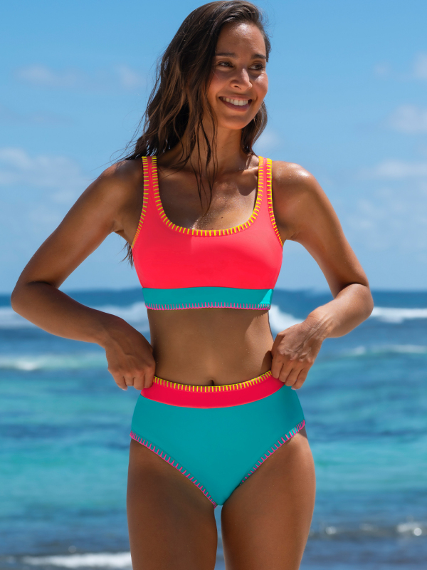 Sporty Neon Colorblock Cross-Back Bikini Set