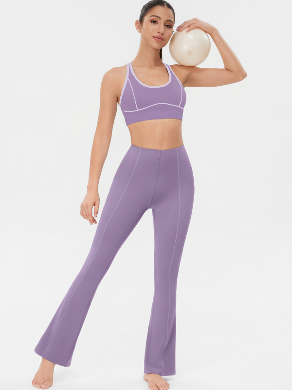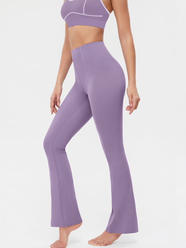 Designed to sculpt and elongate, these high-waisted flare leggings combine a smoothing bonded finish with soft stretch for a sleek, confident look. The clean front seam and subtle flare create a leg-lengthening effect that works from studio to street.
