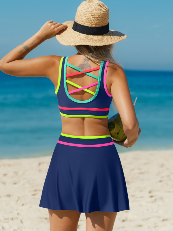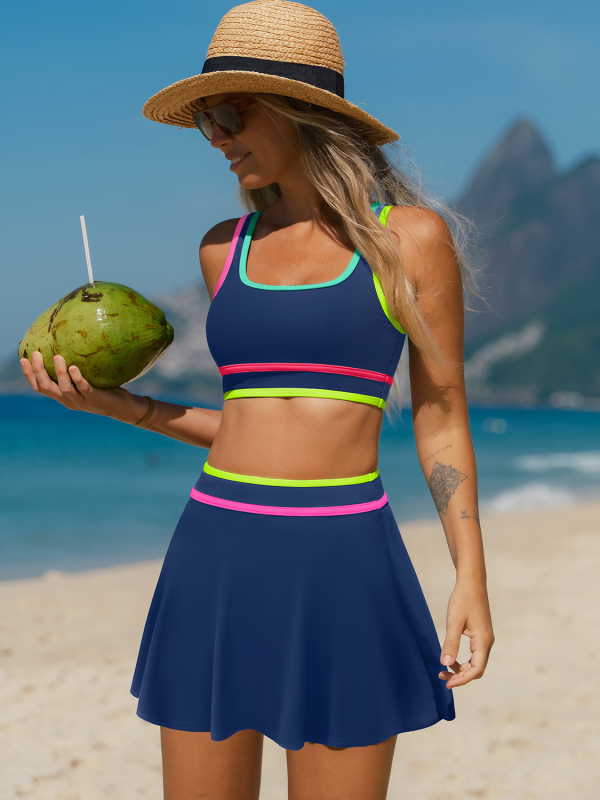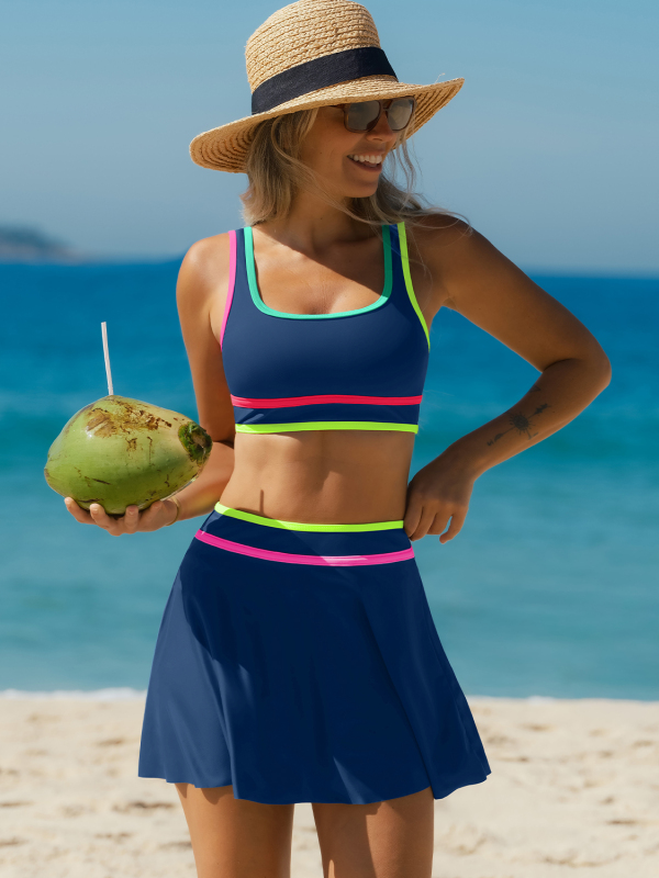 Navy Contrast Trim Sporty 3 Piece Bikini Sets