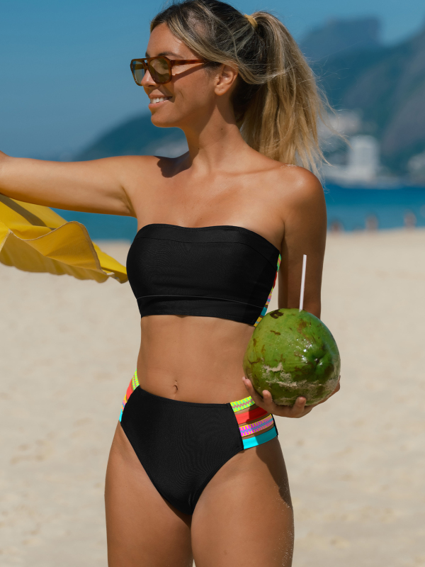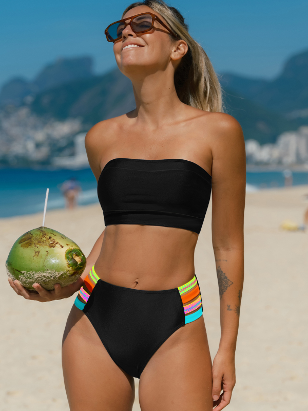 Bandeau Colorblock Strap High-Waist Bikini Set