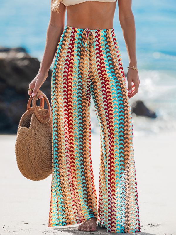 Statement Crochet Pattern High-Waisted Wide-Leg Cover-Up Pants
