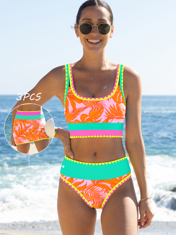 This best-selling 3-piece bikini set includes a bikini top, high-waisted bottom, and a matching skirt for easy, versatile styling. Designed with adjustable shoulder straps and removable soft cups, it offers a comfortable, customizable fit. The high-waisted bottom features medium coverage with a balanced leg opening for a flattering silhouette.Perfect for beach days, pool lounging, or casual seaside wear.
